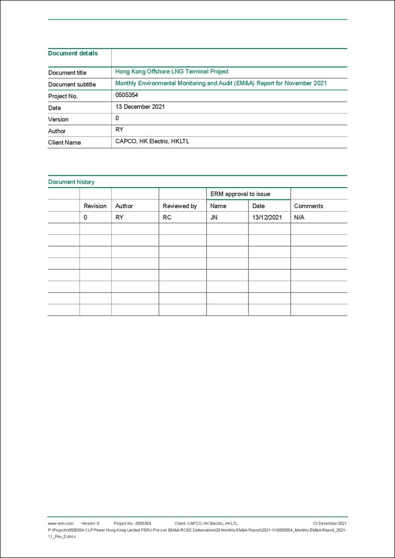 §   the double berth jetty at LNG Terminal under the Hong Kong LNG Terminal Limited (HKLTL), joint venture between CAPCO and HK Electric (FEP-01/558/2018/A) – construction commenced on 27 November 2020;