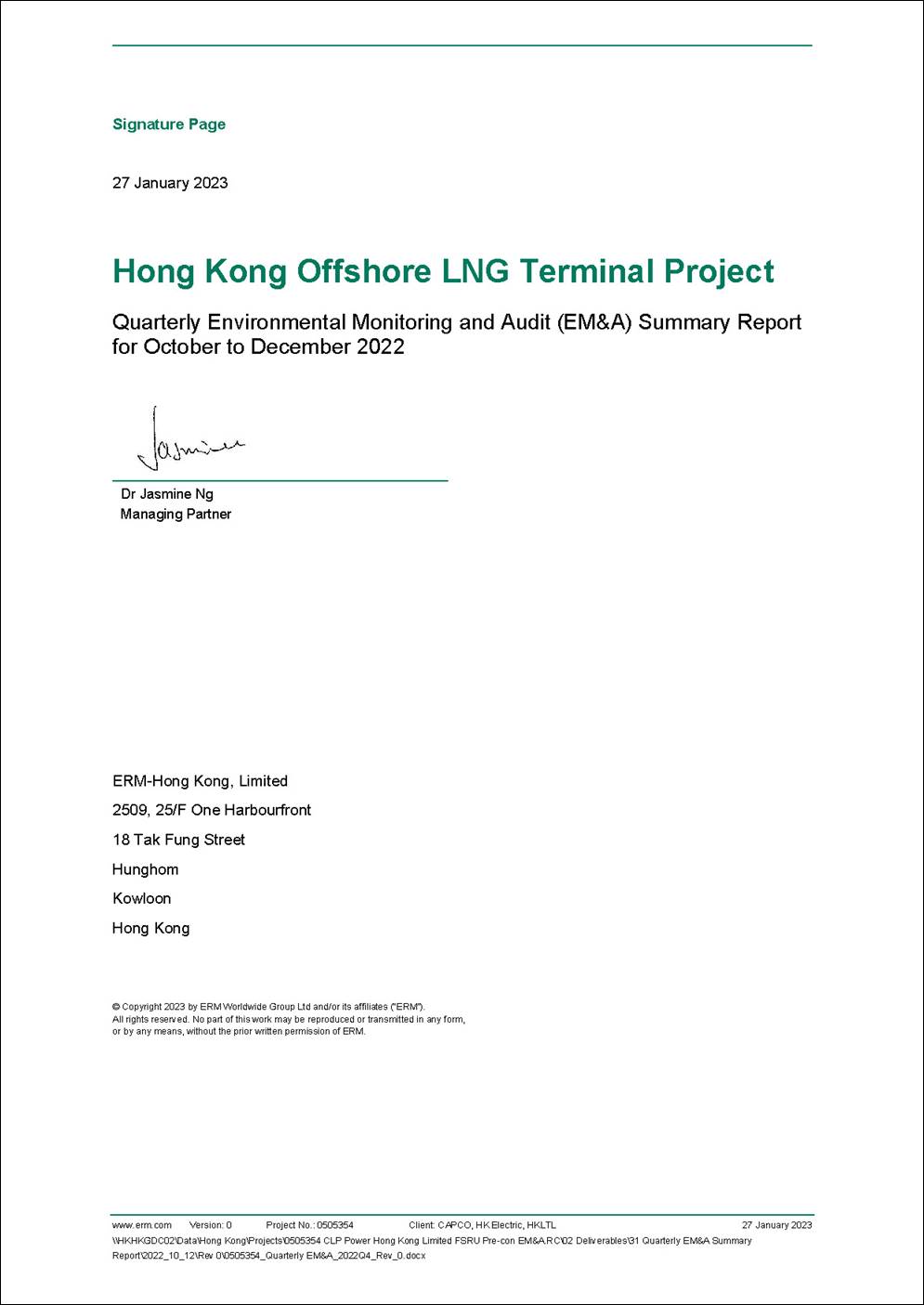 §  the double berth jetty at LNG Terminal under the Hong Kong LNG Terminal Limited (HKLTL), joint venture between CAPCO and HK Electric (FEP-01/558/2018/A) – construction commenced on 27 November 2020;